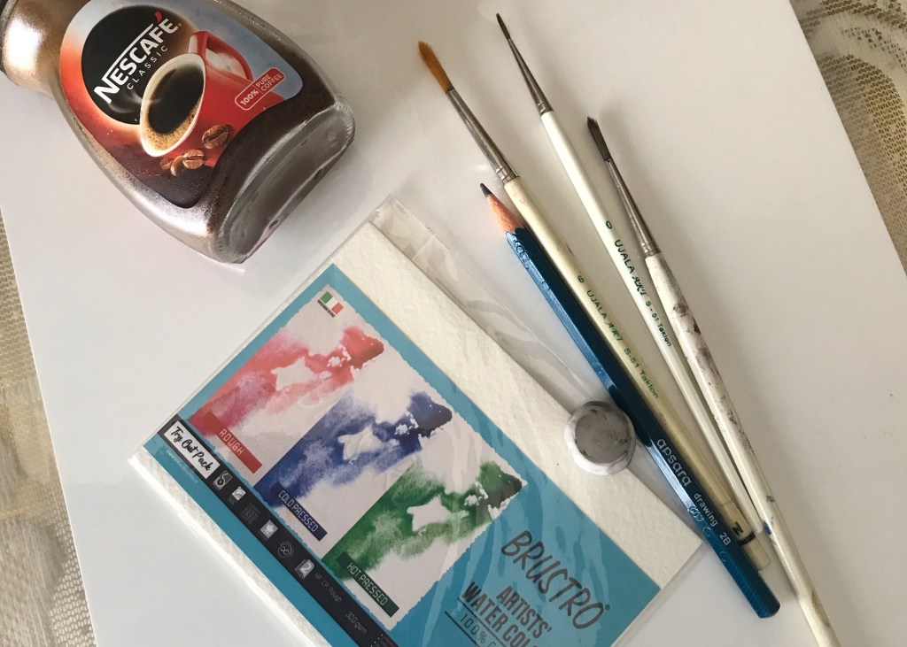 Creating an actual artwork using coffee requires prior experience and skills in painting. That is why I suggested the scroll design which is very easy and will always look good. I recently bought some art material from ‘Creative Hand Art Materials’. They sent me a small sample pack for watercolour paper. The paper is 300GSM. I painted the Bird Artwork on it. The scenery is painted in my regular Art journal.