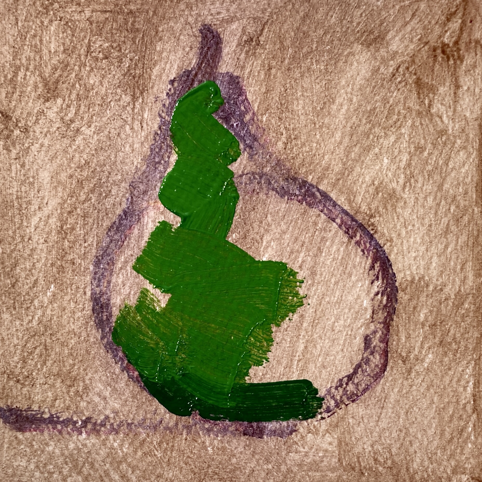 It is best to simplify the object. A pear looks like an alphabet ‘A’ or a triangle over a circle. After establishing a loose sketch, I apply a thin wash of neutral colour. This underpainting helps eliminate the whites of the paper and creates depth in the painting. Next, I establish the dark tones in the painting and paint from dark to light. You can also paint from light to dark. It depends on your chosen medium.